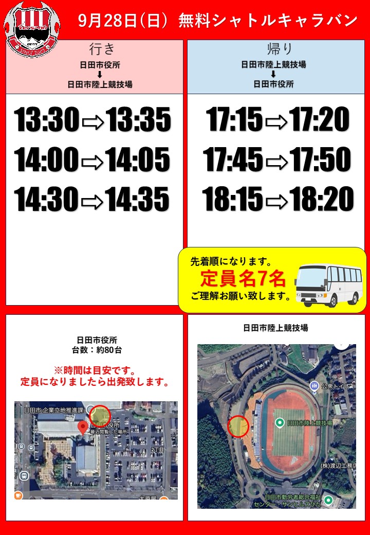 ※日田市陸上競技場まで徒歩約20分