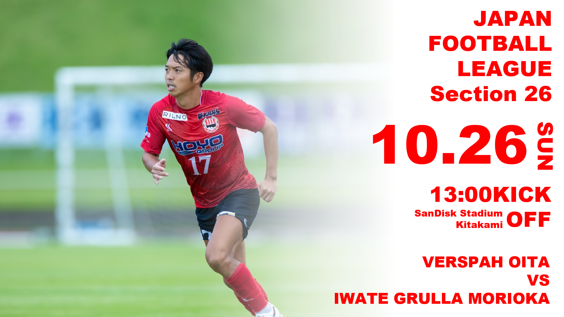 10月26日(日) JFL 第26節 vs いわてグルージャ盛岡| 試合情報