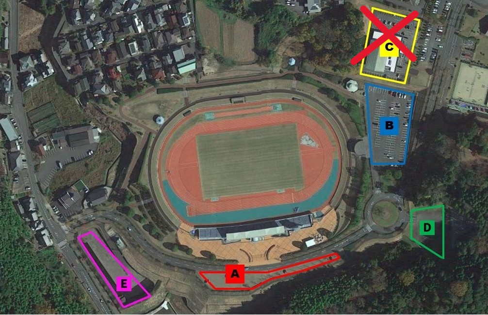 ●日田市陸上競技場 駐車場は上記4か所となっております。