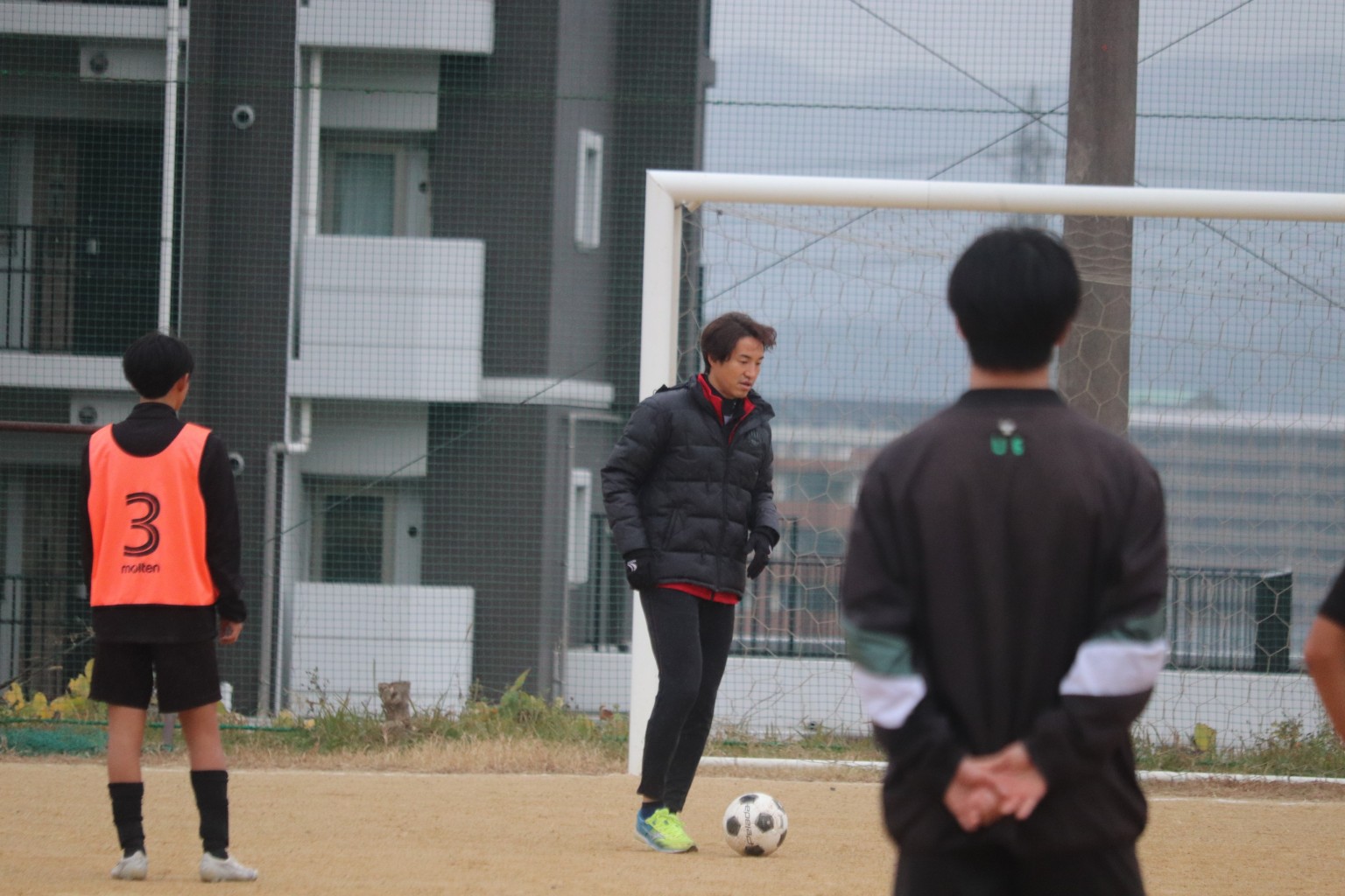 金崎夢生選手が実践形式で学生たちに指導を行いました。