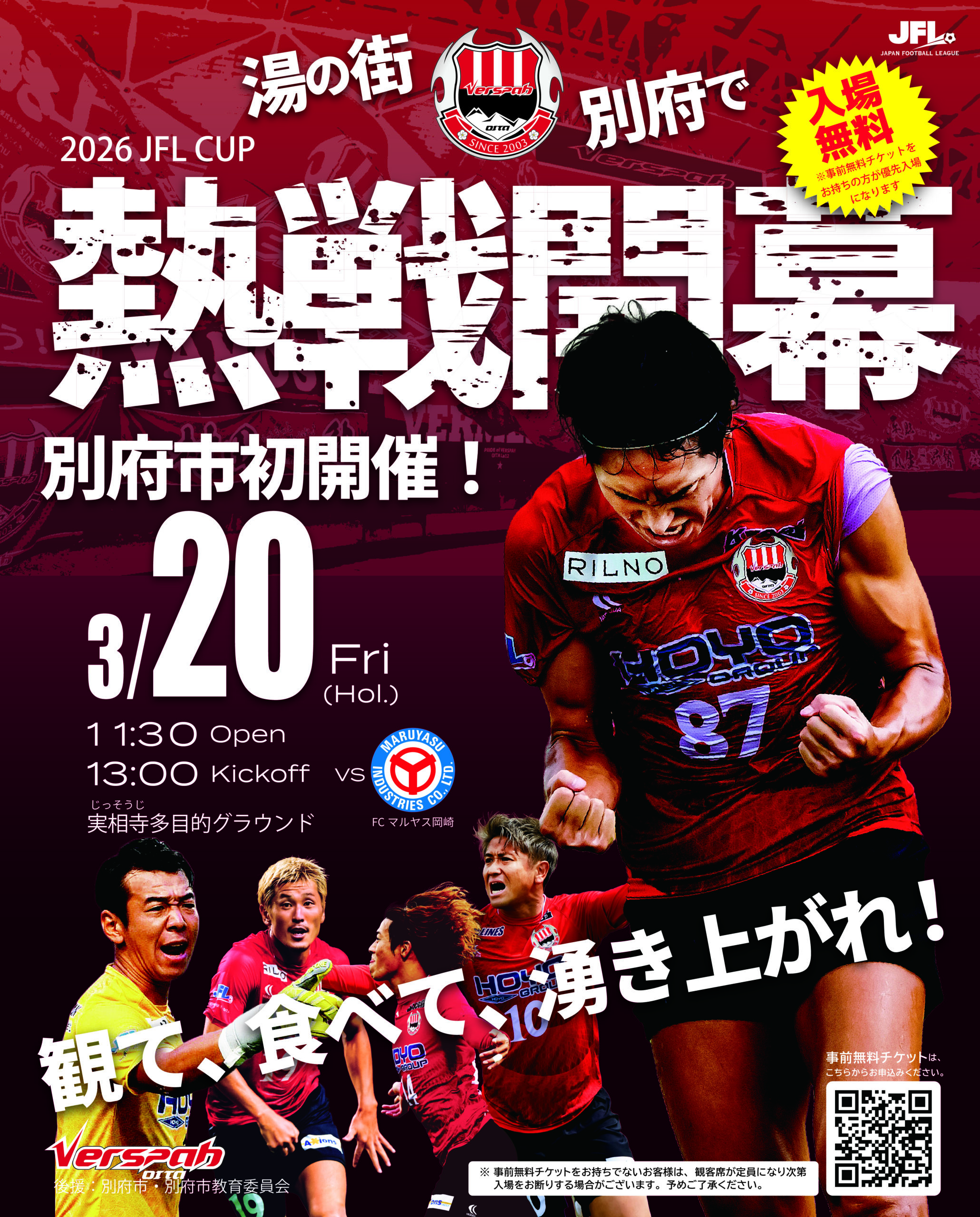 【試合情報】2026 JFL CUP 開幕戦 3月20日(金・祝) FCマルヤス岡崎戦 イベント情報