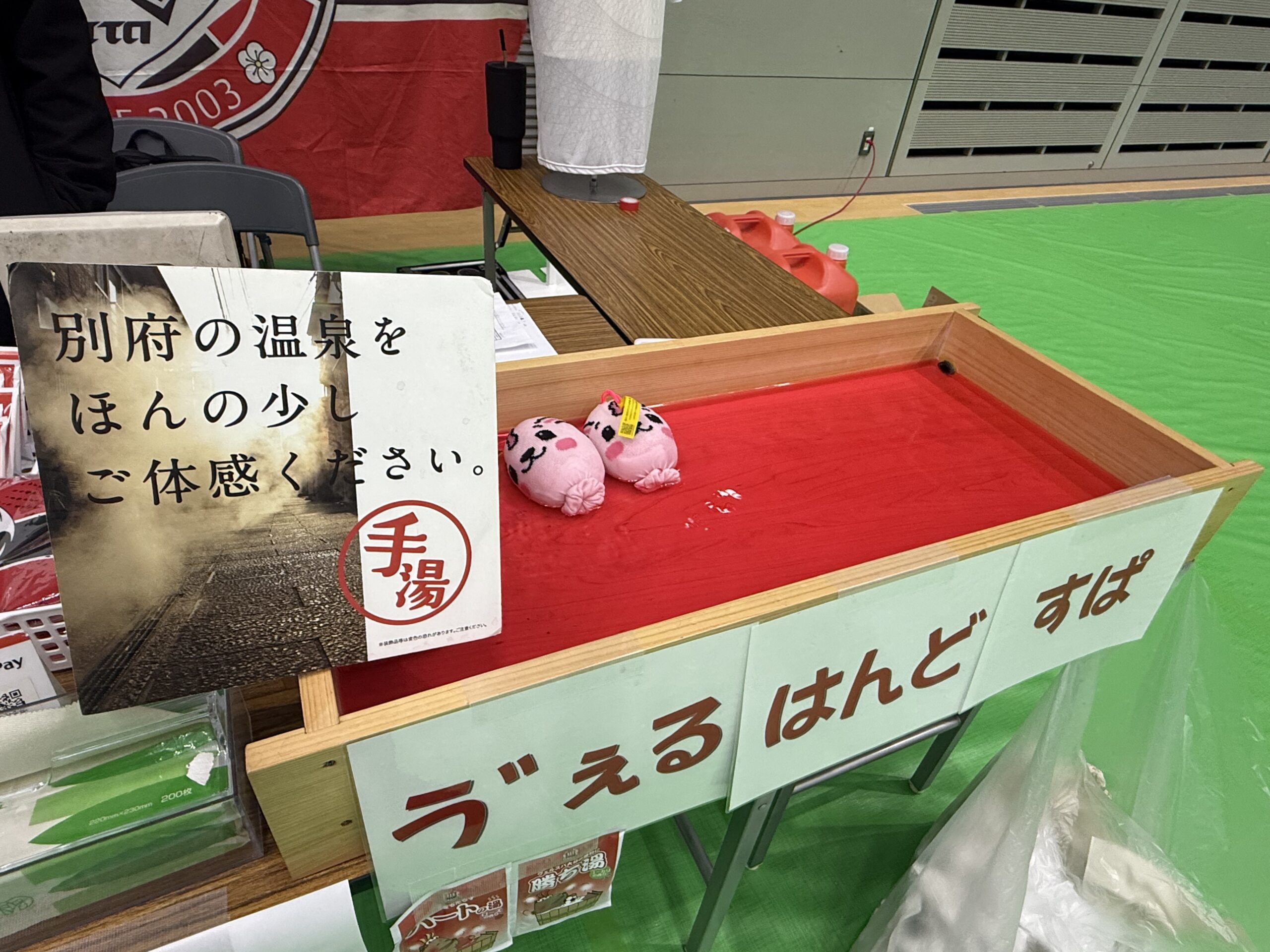 ブースでは別府ならではの『手湯』を設置し、ランナーの方たちのおもてなしをしました。