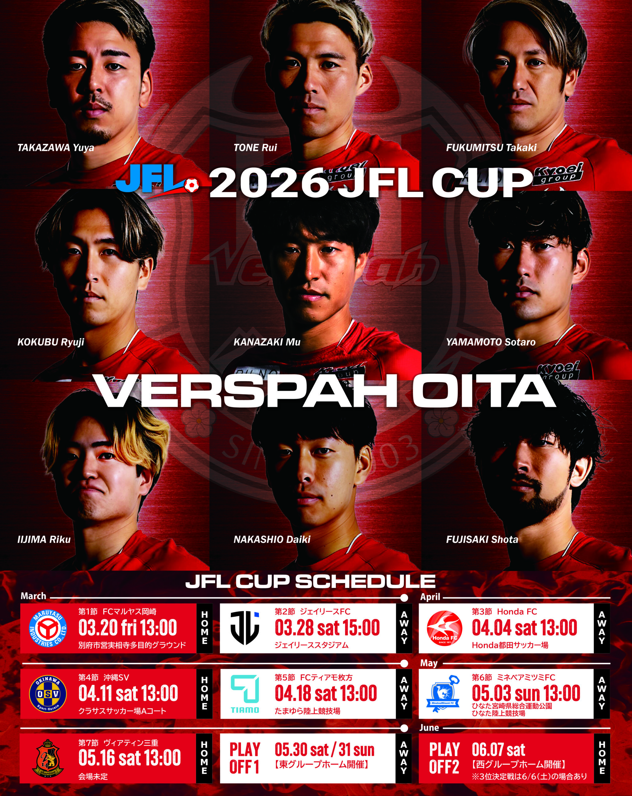 3月20日(金・祝)に開幕する「2026 JFL CUP」の全日程が下記のとおり決定いたしましたので、お知らせいたします。