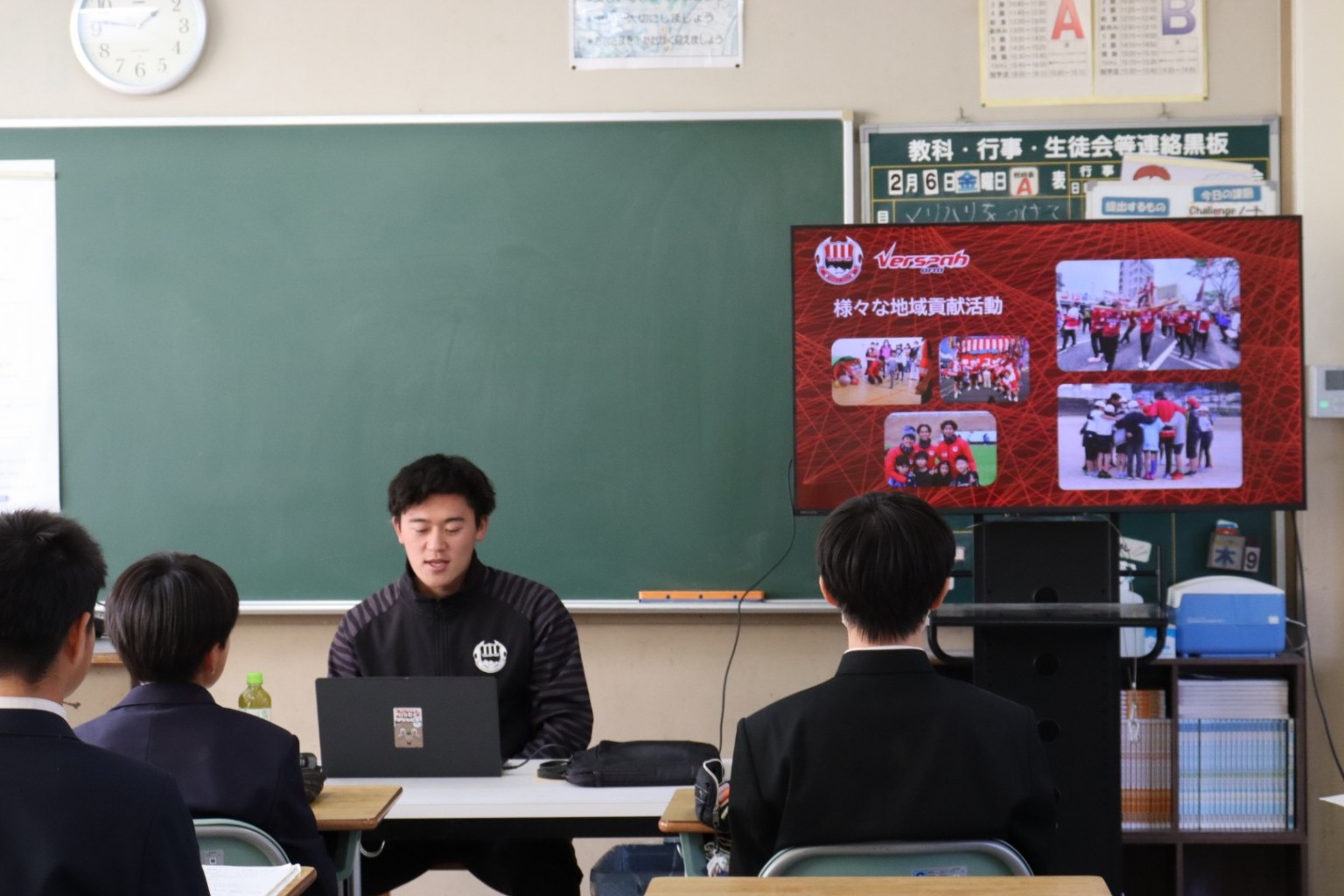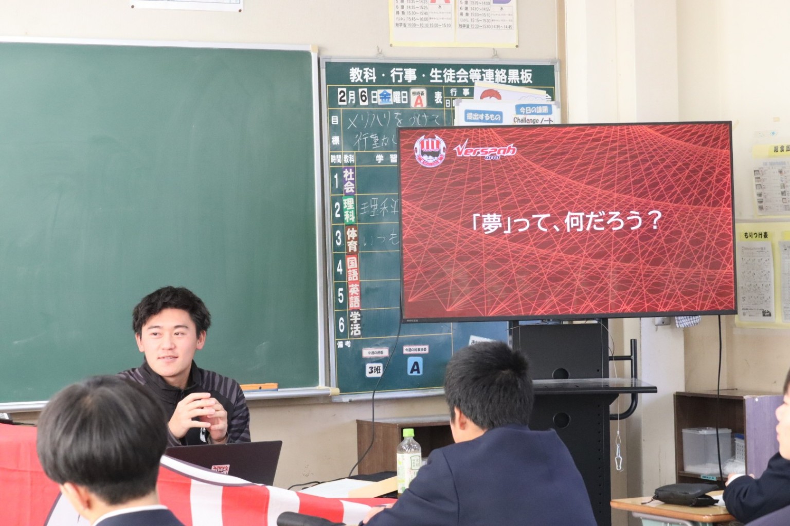 中学一年生の生徒たちに夢についてや、スポーツの業界にも様々な仕事があることを伝えさせていただきました。